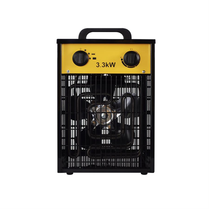 OverzichtElektrische heater in degelijke metalen zwartgelakte behuizing, voorzien van een handgreep voor makkelijk vervoer en verplaatsing. Deze “kleinere” heater is de ideale compacte oplossing voor het verwarmen van bijvoorbeeld een kleine werkplaats of bouwkeet. De heater is uitgerust met thermostaat en oververhittingsbeveiliging en vrijstaand te plaatsen.